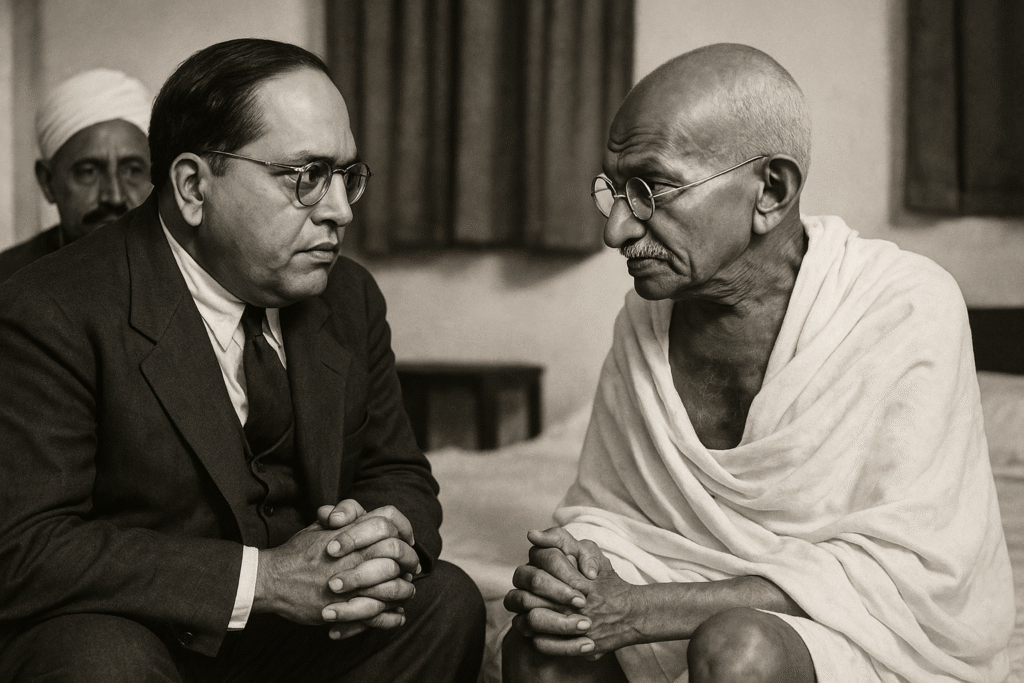 The Poona Pact emerged from intense negotiations between Dr. B.R. Ambedkar and Mahatma Gandhi during Gandhi’s fast at Yerwada Jail in September 1932. While Ambedkar had secured separate electorates for the Depressed Classes through the Communal Award, Gandhi opposed this provision, arguing that it would divide Hindu society. The discussions were emotionally charged yet historically significant, as both leaders represented two powerful but differing visions of social reform.